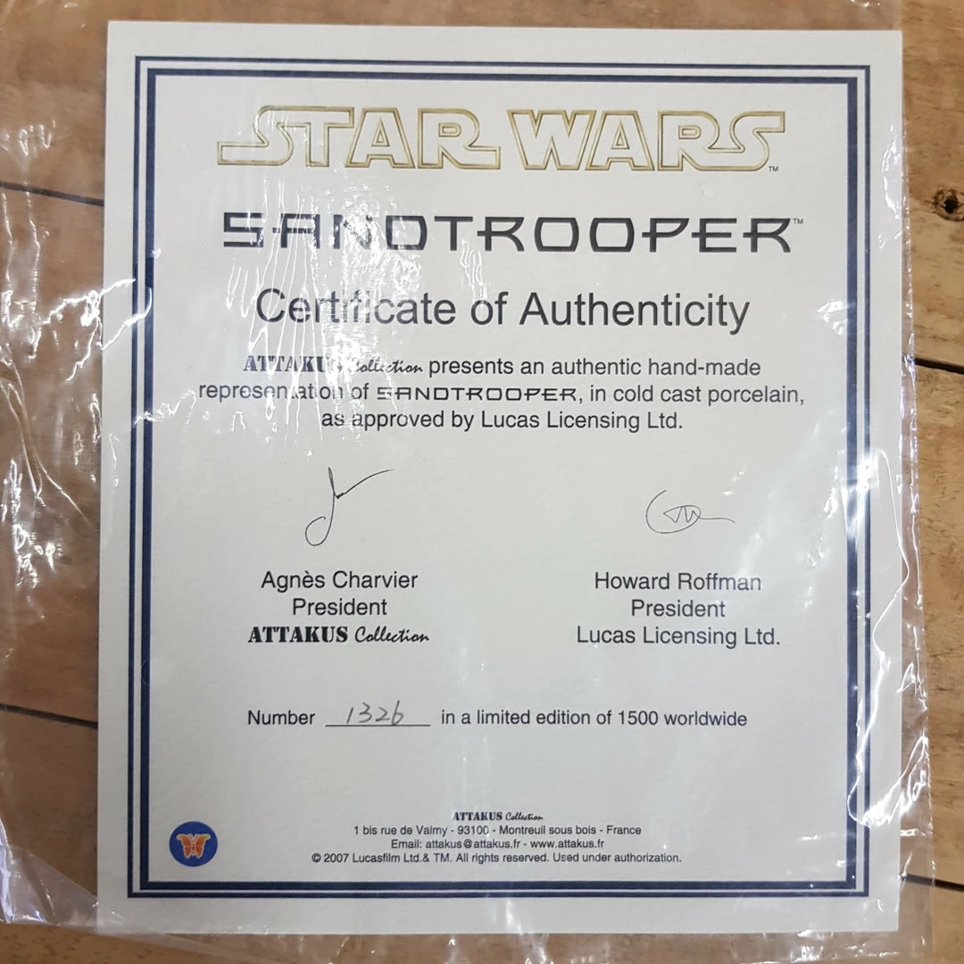 Attakus presents an authentic hand-made representation of Sandtrooper in cold cast porcelain as approved by Lucas Licensing Ltd.