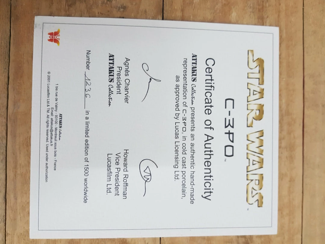 Attakus Collection presents an authentic hand-made representation of C3-PO, in cold cast porcelain as approved by Lucas Licensing Ltd
