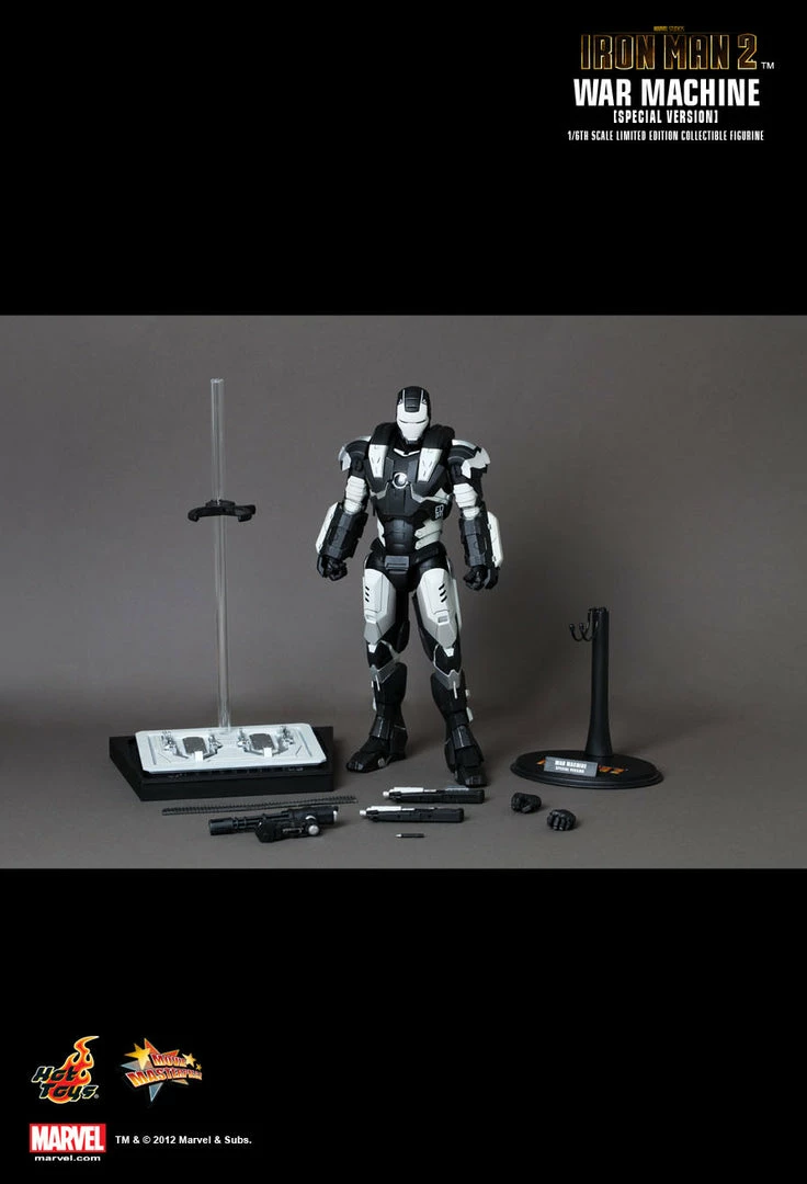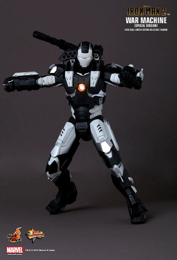 Hot Toys is proud to present the 1/6th scale War Machine (Special Version) Limited Edition Collectible Figurine from the Iron Man 2 movie. The movie-accurate War Machine collectible is highly detailed and fully deployed, specially painted with mat black, light grey and silver color scheme with battle damaged scratches finishing.