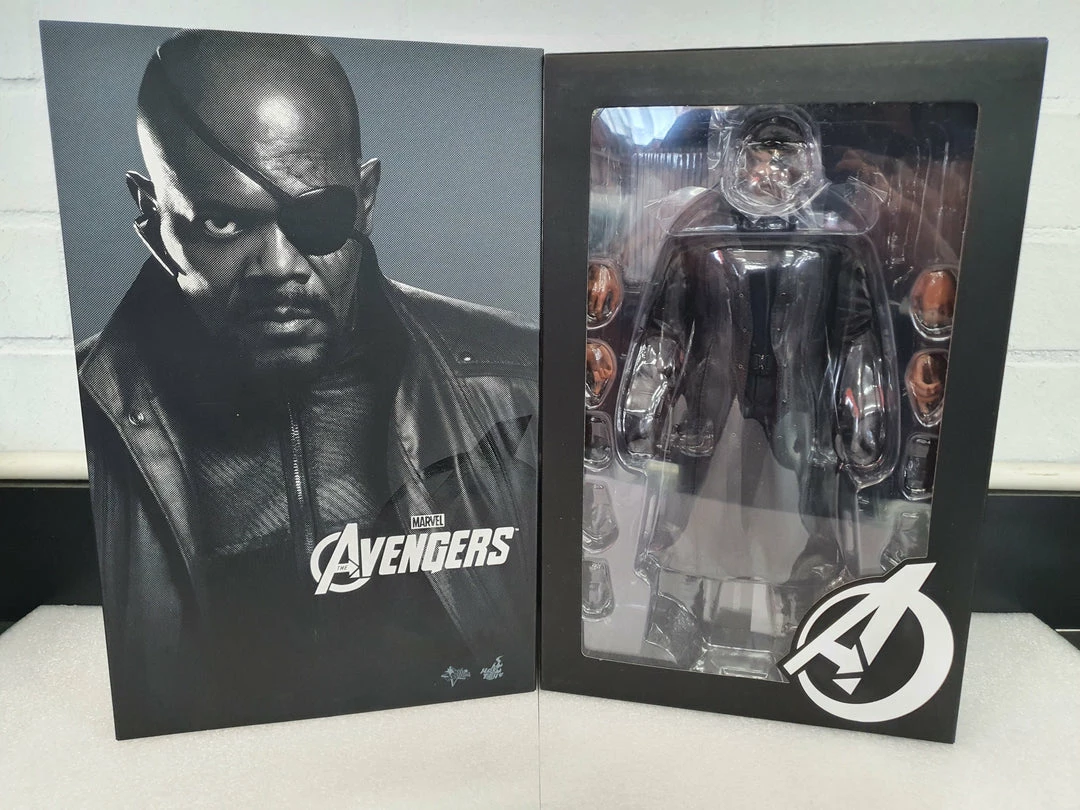 – Figure stand with Nick Fury nameplate and the movie logo