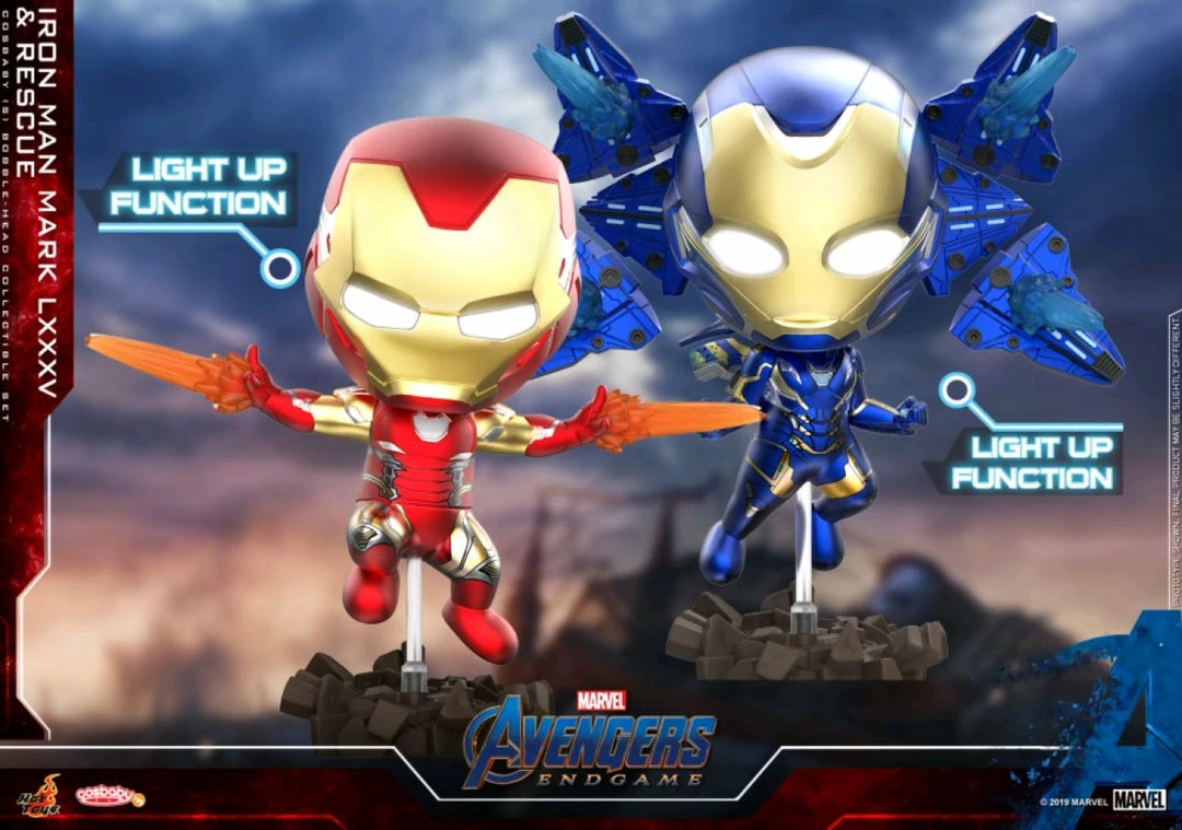 Hot Toys Avengers 4: Endgame – Iron Man Mark LXXXV & Rescue Light Up Cosbaby Set