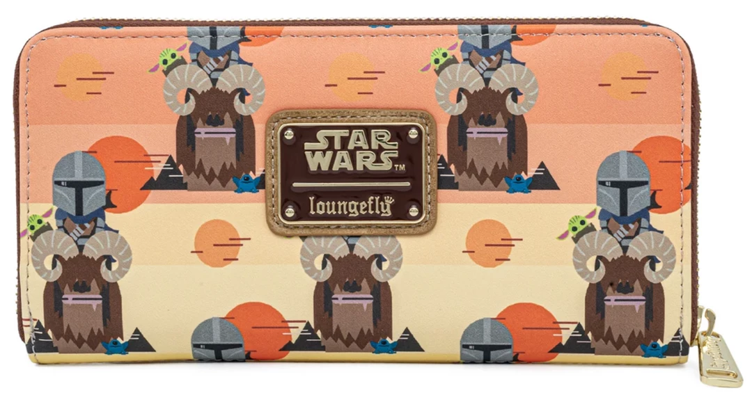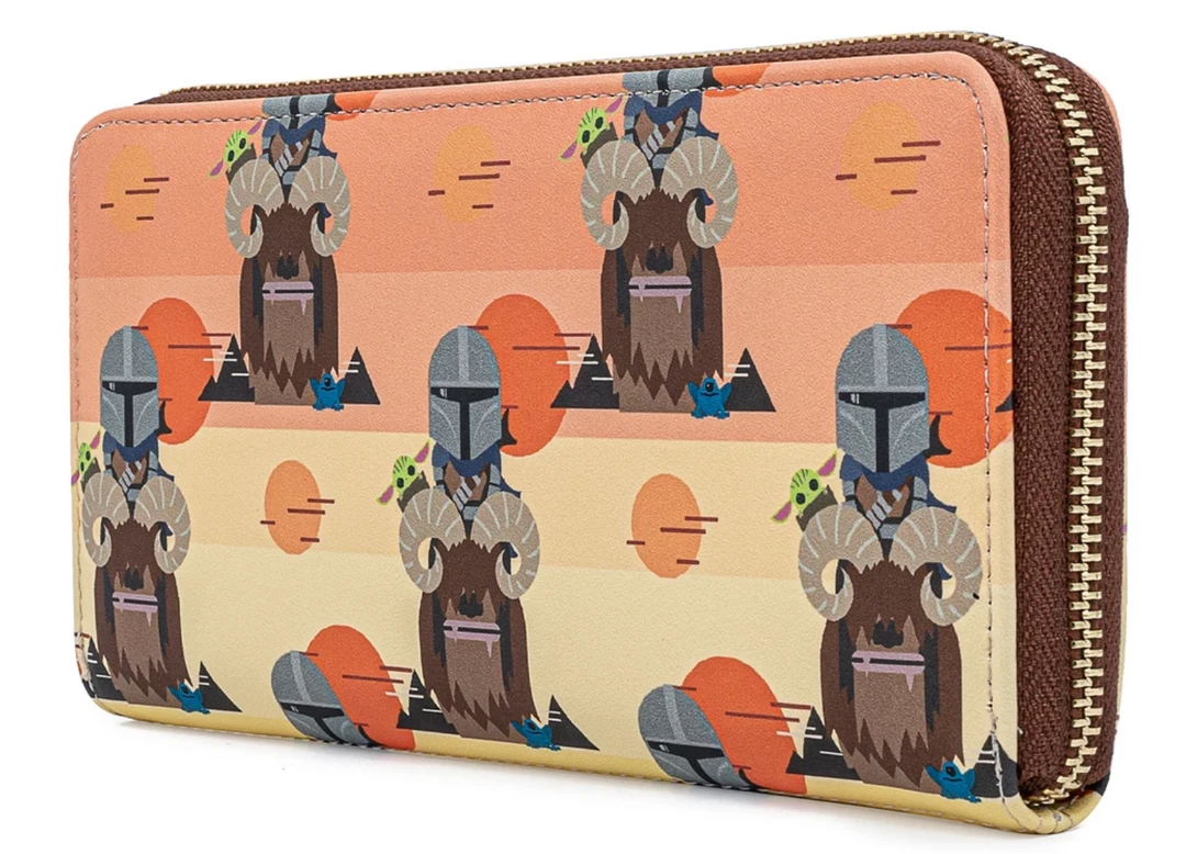 Celebrate the most stellar fandom of them all and the bounty hunting escapades of The Mandalorian™ with a Loungefly STAR WARS™ Mandalorian Bantha Zip Around Wallet. Its design even shows the Child peaking over the Bantha’s horns. Keep your necessities close and the bounty closer.