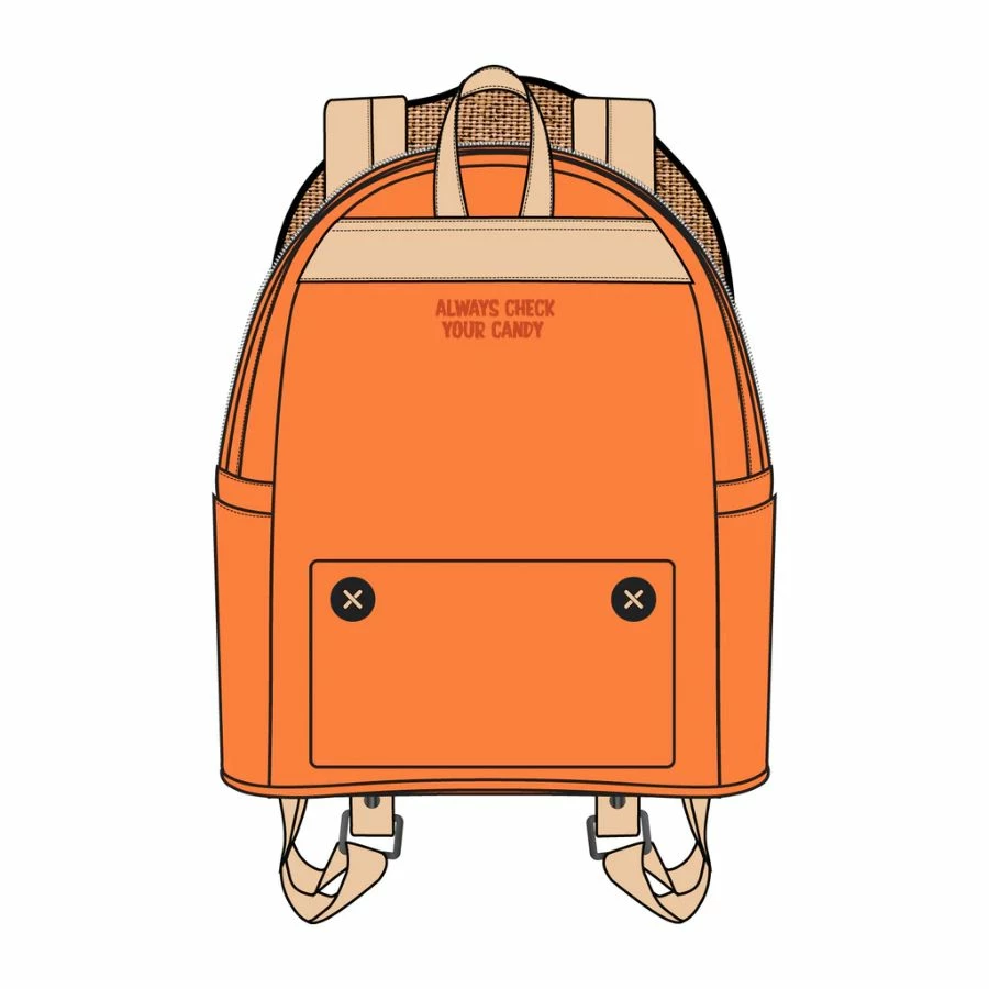 Keep the jack-o’-lanterns lit! Sam, from Trick ‘r Treat, is coming to enforce the rules of Halloween as this Loungefly Trick ‘r Treat Sam Cosplay Mini Backpack. On the front of this backpack, Sam comes to life in applique and burlap detail. A zipped compartment, near the tied loop around Sam’s neck, opens and closes with a clear resin lollipop charm pull. On the back, the message “Always check your candy” serves as a reminder to stock up on chocolate and add a thrill to your adventures. It’s the perfect accessory for trick-or-treating or any fun outing you have planned.