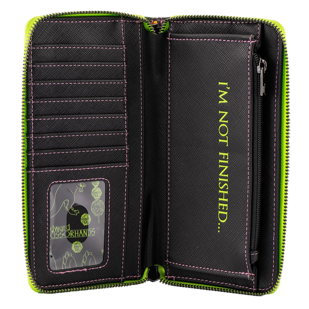 Edward Scissorhands seems to have taken his lawncare job very seriously on this Loungefly Edward Scissorhands Topiaries Zip Around Wallet. In the foreground of the garden you’ll find Edward standing next to his wonderfully creative stag hedge. The hedges are even textured with soft chenille fabric. Down the garden path you’ll see more masterfully manicured hedges among many beautiful flowers. This design is sure to delight any who encounter it!