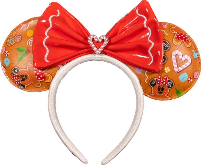 ‘Tis the season for sweet treats! Claim your holiday treat as the Loungefly Disney Gingerbread Mickey and Minnie Mouse Ears Headband. Mickey and Minnie Mouse are shown as gingerbread cookies along with Mickey ears shaped cookies, holly leaves, candy canes, and other assorted candies. The pattern on the Disney Gingerbread Mickey and Minnie Mouse Ears Headband matches the Disney Gingerbread Mickey and Minnie Mouse Mini Backpack perfectly, and the center bow looks like it’s decorated with icing and a heart candy. This spectacularly sweet headband is the perfect finishing touch to a Disney winter wardrobe.