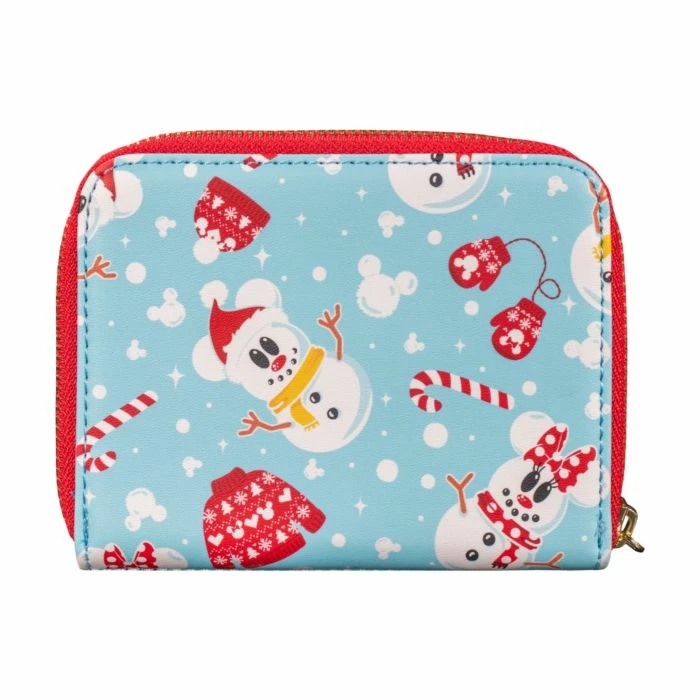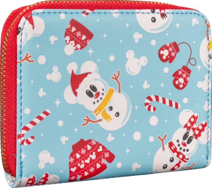 Let it snow, let it snow, let it snow with the Loungefly Disney Snowman Mickey and Minnie Mouse Zip Around Wallet. This cool design features Mickey and Minnie Mouse as snow sculptures along with Mickey ears shaped snowflakes, sweaters, candy canes, mittens, and pom pom topped hats. The search for the perfect accessory for your winter wardrobe is here.