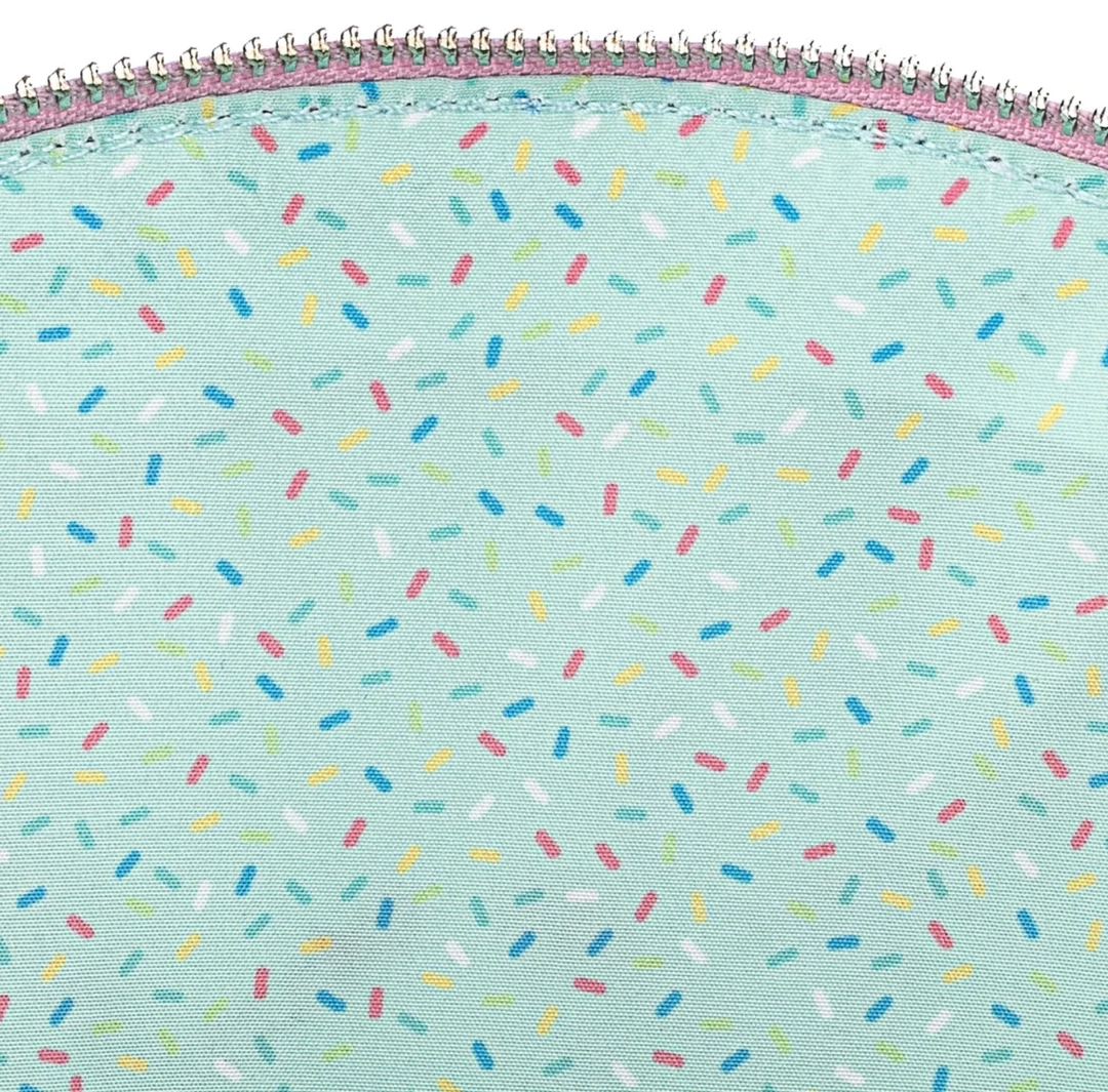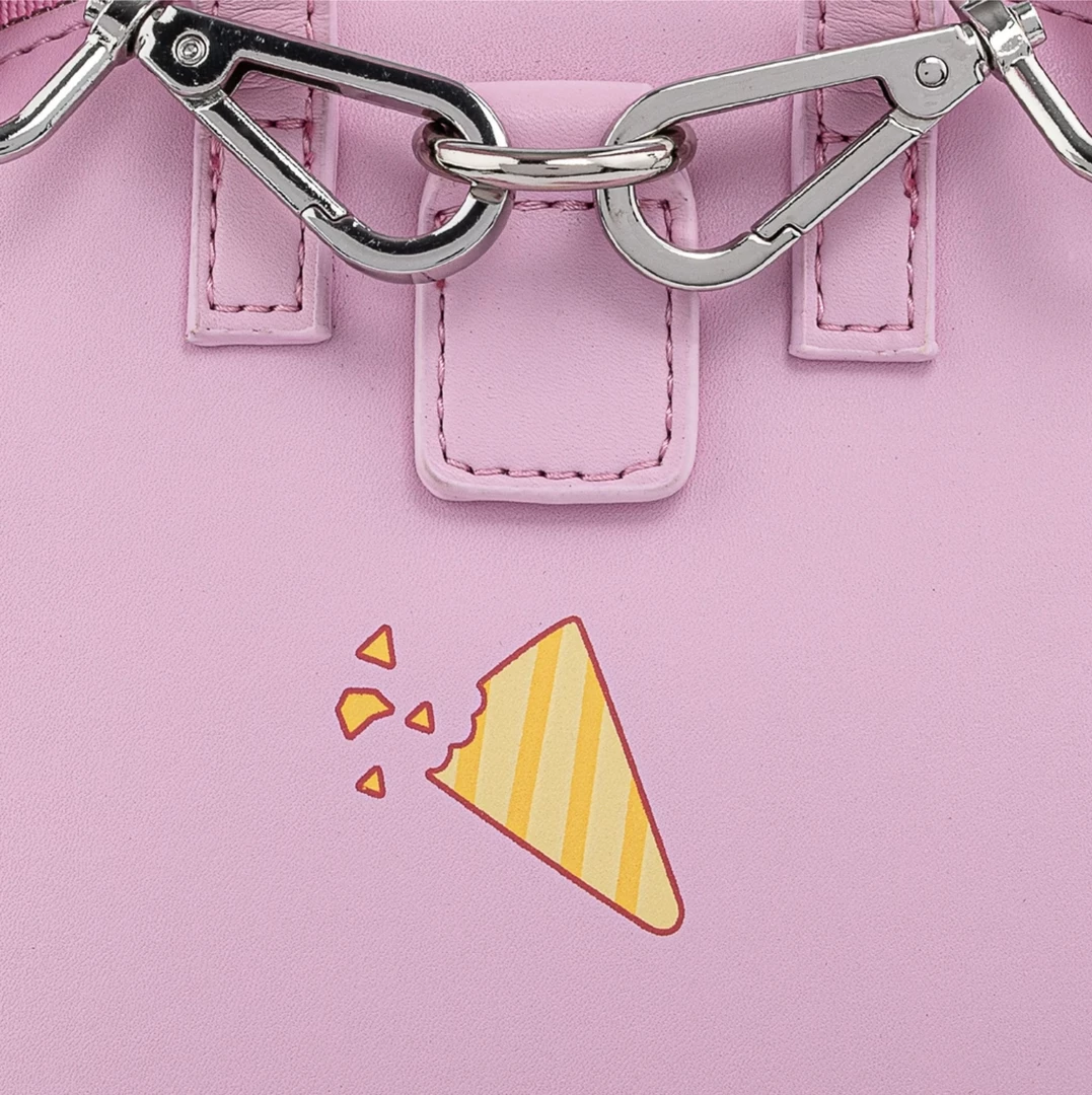 The Pokémon Ice Cream Convertible Mini Backpack is made of vegan leather (polyurethane). Bag has adjustable shoulder straps (detachable), sturdy metal hardware, and features: applique, embroidered, and printed details. Take note of the coordinating design of the inside lining fabric.