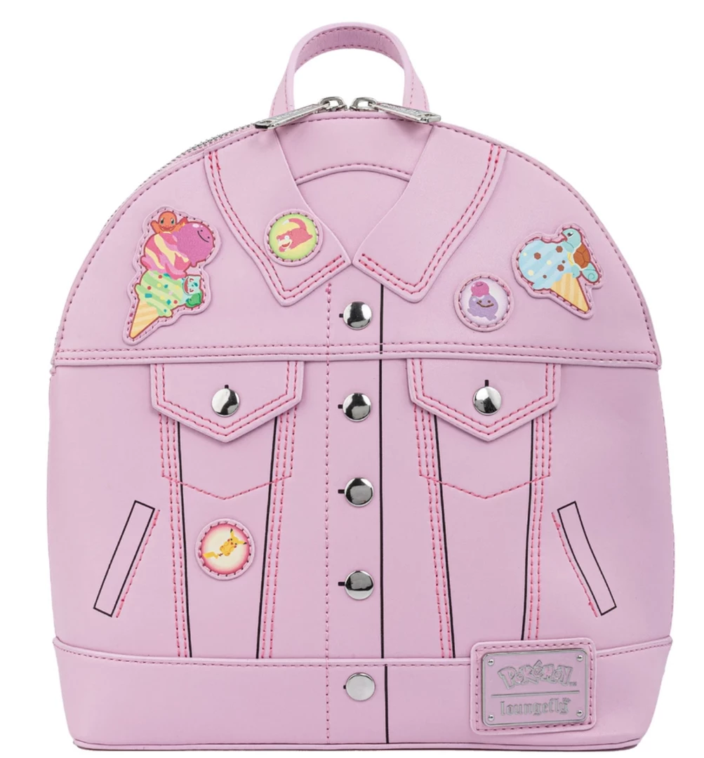 In your quest to catch them all, don’t forget to upgrade your gear with Loungefly’s Pokémon Ice Cream Convertible Mini Backpack. The design looks like a pink, button up jacket, and features the Pokémon Lickitung, Piplup, and Squirtle all enjoying aptly themed ice cream cones. This bag is perfect for summertime outfits and packing your essentials for whatever adventure comes your way.