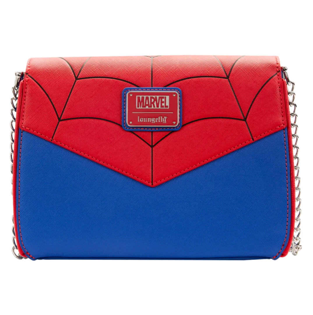 Stay stylish with this Loungefly Spider-Man Color Block Crossbody Bag. Its design features a molded metal spider emblem and bold blue and red color blocks, accented with a contrasting web pattern. You’ll be able to fit your essentials and some extra in this stylish crossbody that you can sling over your shoulder when in a hurry.