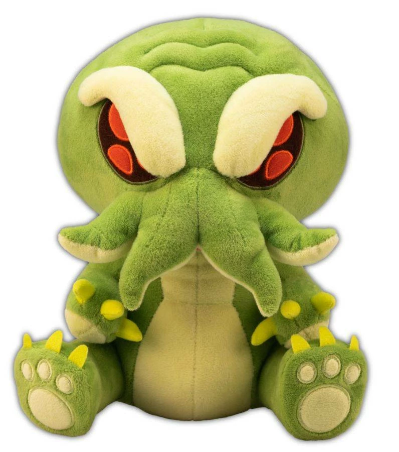 Towering at 9.5″ huge, Cthulhu is a green creature with a bulbous head, furrowed brow, wings on his back, and a tentacle-laden mouth. Unzip his mouth to find his red forked tongue and an ocean liner he’s devouring.