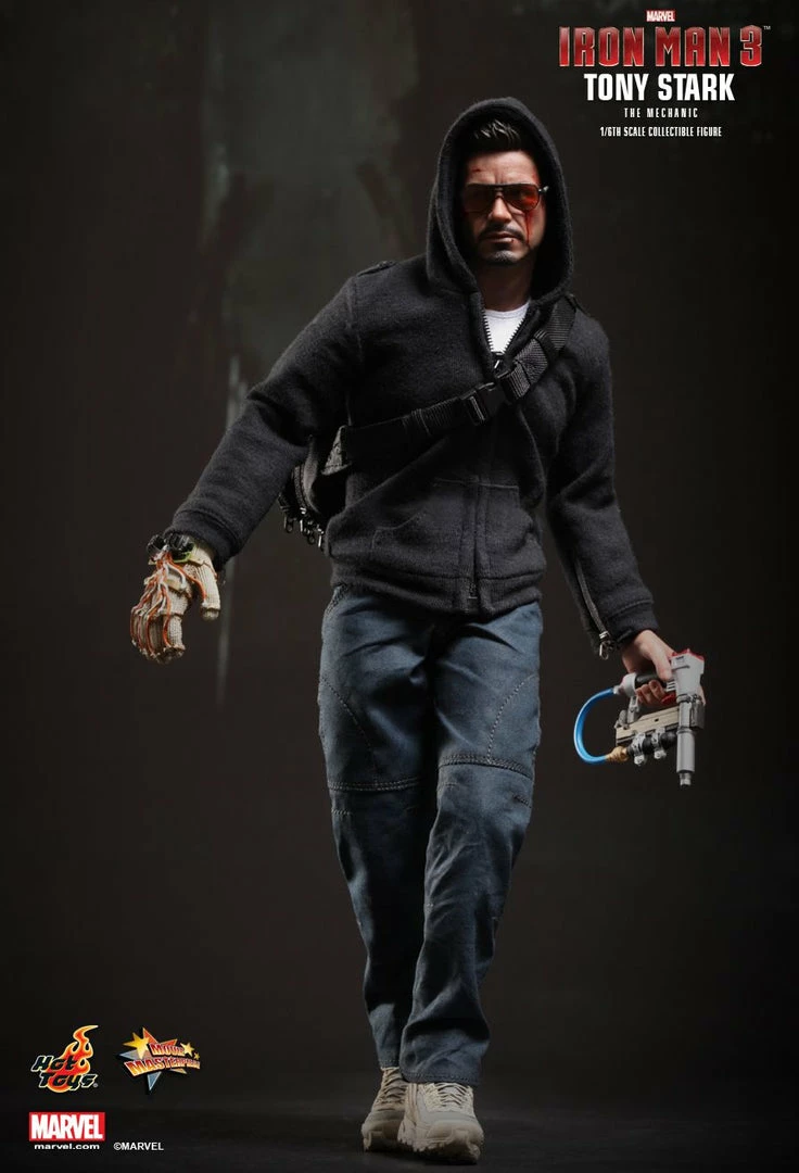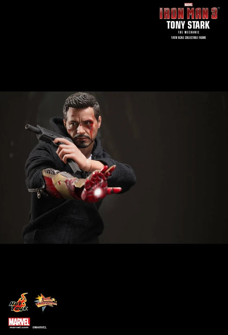 The movie-accurate Tony Stark (The Mechanic) Collectible Figurine is specially crafted based on the image of Robert Downey Jr. as the genius billionaire Tony Stark in his battle damaged civilian attire in the movie, highlighting the newly developed head sculpt, an advanced body with light-up chest light and greatly detailed weapons and accessories.