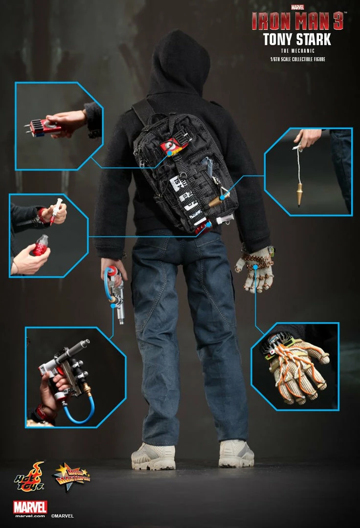 Hot Toys is thrilled to introduce the Tony Stark (The Mechanic) Collectible Figurine after the exciting scene where Tony Stark creates homemade weapons to infiltrate The Mandarin’s mansion.